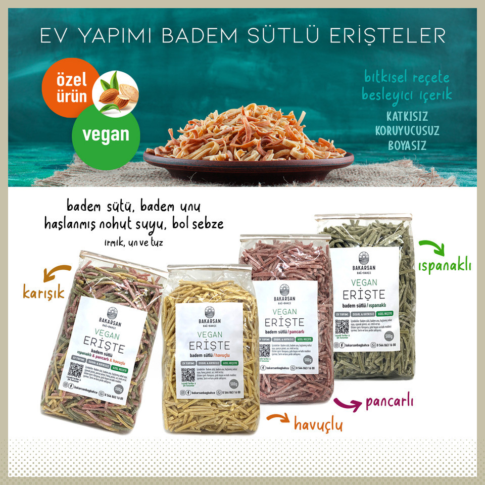 1 bardak Bakarsan Bağ Bahçe Badem Sütlü Karışık Sebzeli Vegan Erişte
