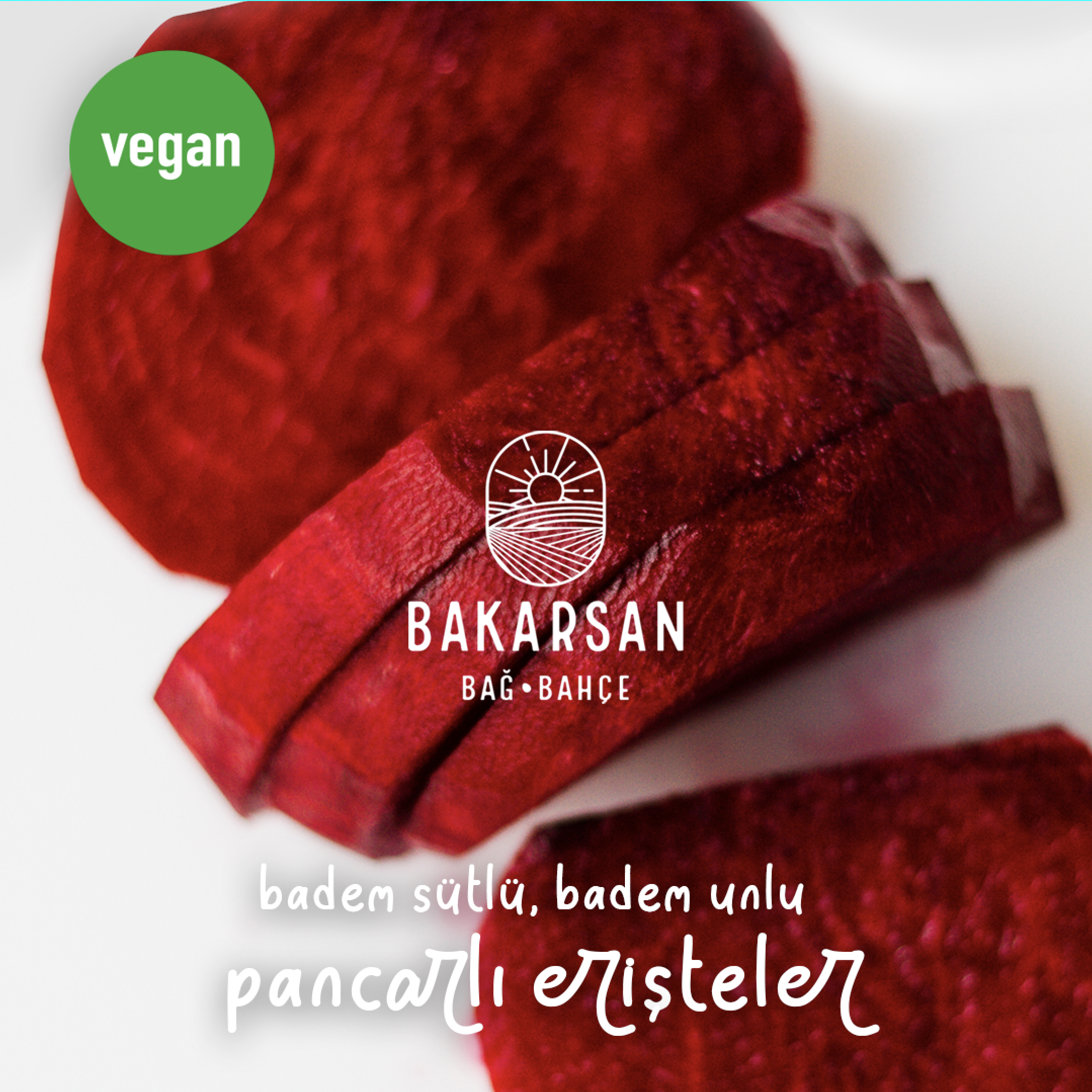 Bol B vitaminli ve besin değeri yüksek olan Badem Sütlü Pancarlı Vegan Eriştemiz, vegan dostlarımız için lezzetli ve sağlıklı bir seçenektir. Mevsiminde buharda pişirilmiş pancar, haşlanmış nohut suyu ve badem sütü ile yoğurulan hamurumuz incecik açılıp, sacda pişirilir. Kaşıktan düşmeyecek ölçüde kesilip paslanmaz çelik raflara serilen, özel beyaz pamuklu örtülerde kurutup sizler için özenle paketlenir.