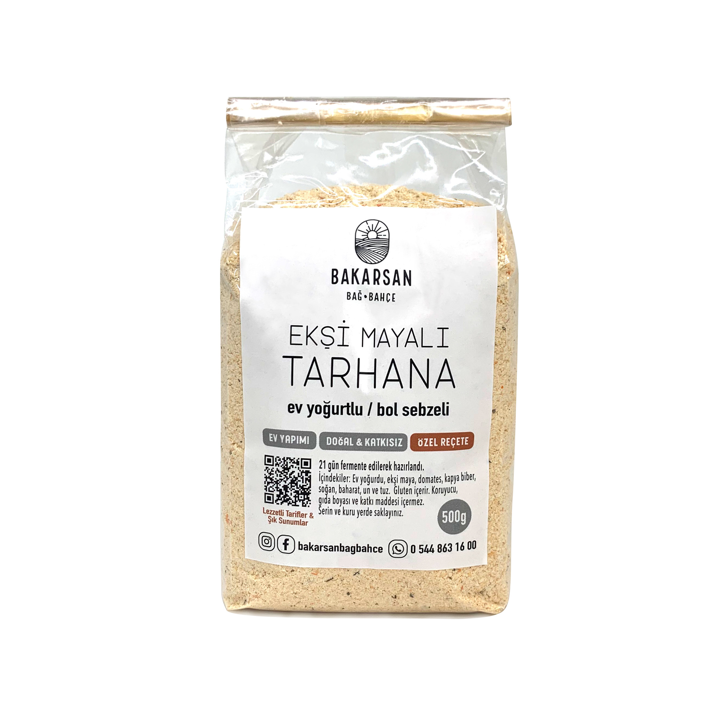 21 gün boyunca fermente edilerek özel reçetesi ile doğal ve katkısız olarak üretilen Ekşi Mayalı Tarhanamız, Anadolu'nun zengin lezzetlerini sofranıza taşıyor. Her gün yoğurularak fermente edilen probiyotik zengini tarhanamız, küçük parçalara ayrılıp kurutulduktan sonra incecik öğütülerek hazırlanır. Yılın her mevsimi ve günün her öğününde keyifle tüketebilirsiniz.