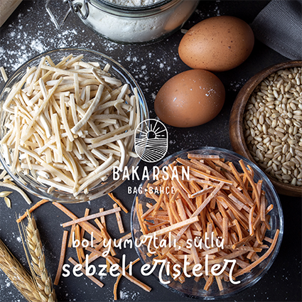 Havuçlu Eriştelerimiz, bolca yumurta ve buharda pişirilmiş havuç içeriyor. Geleneksel ‘Türk Makarnası’ tarifimize sadık kalarak, katkı maddesi, renklendirici veya koruyucu kimyasal içermeyen bu ürün, yemeklerinize doğal bir renk ve lezzet katacak.