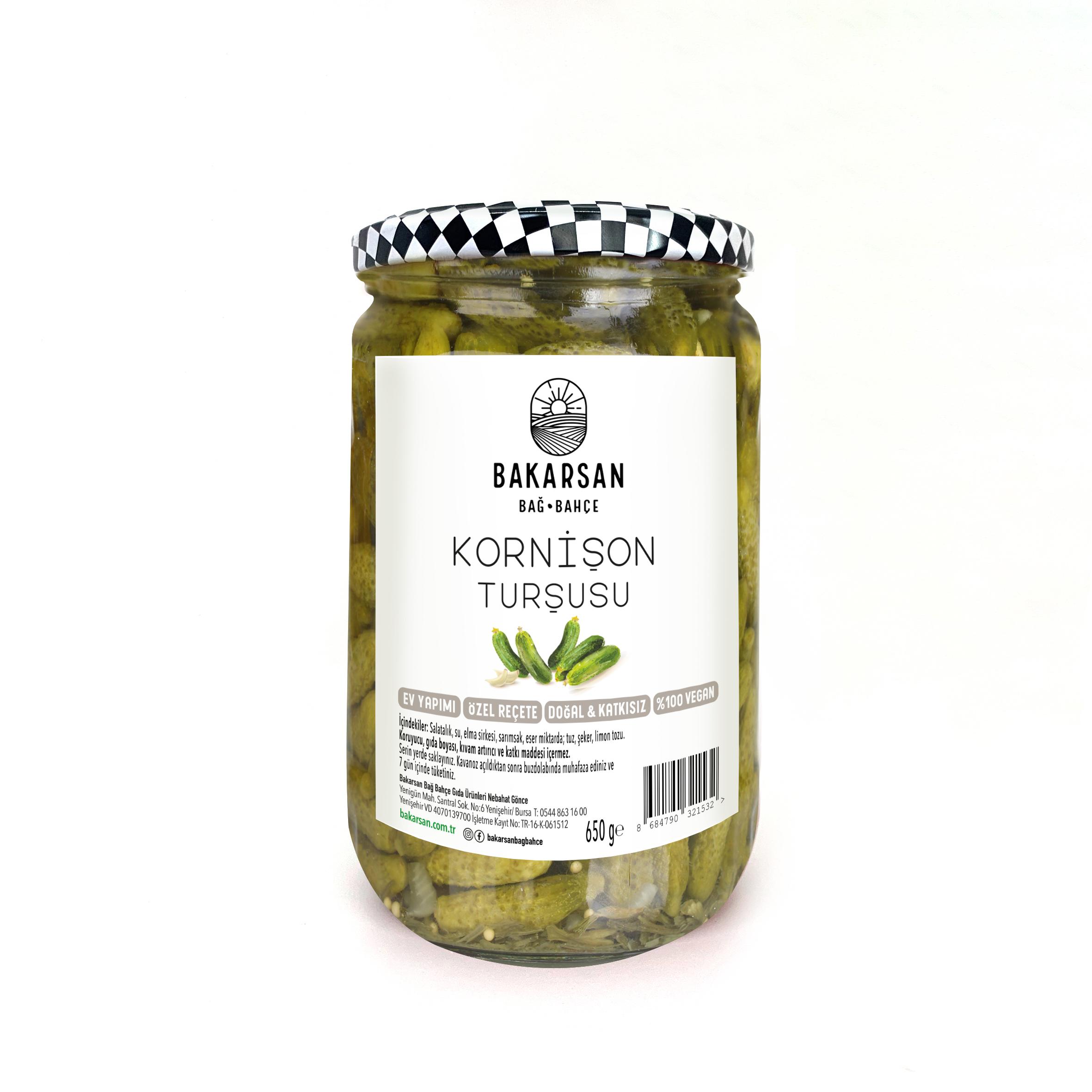 Bakarsan Bağ Bahçe Kornişon Turşu, taptaze salatalıkların elma sirkesi ve sarımsak birleştiği nefis bir lezzet sunar.